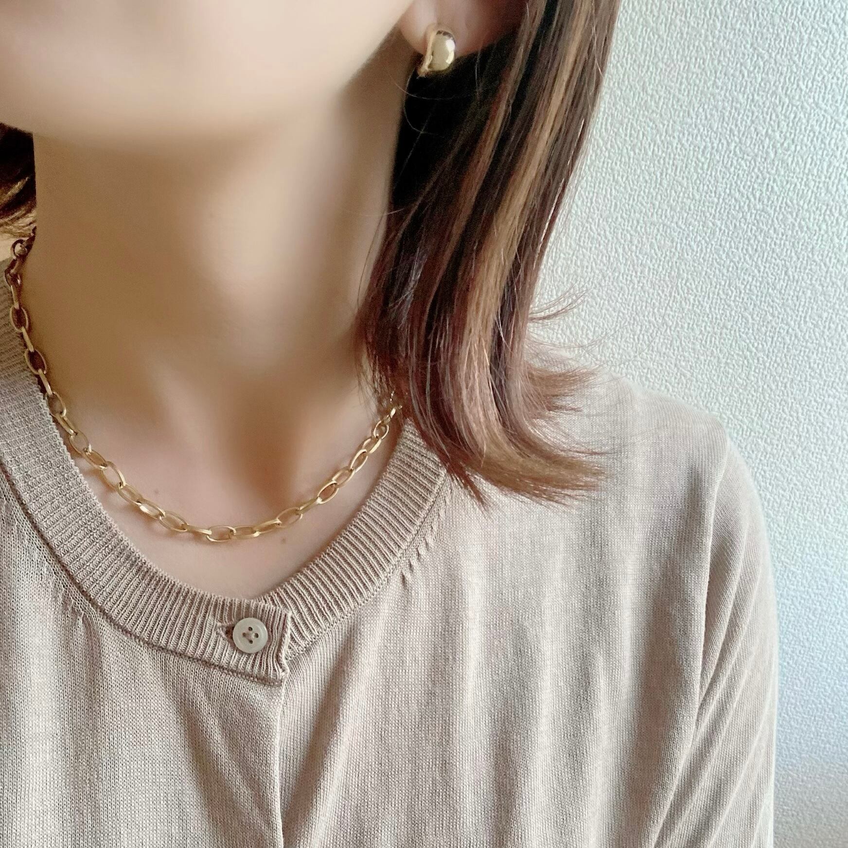 シンプルの中にも程よい存在感があるネックレス。素材にはサージカルステンレスを使用しておりますので変色・錆びにも強いです。
