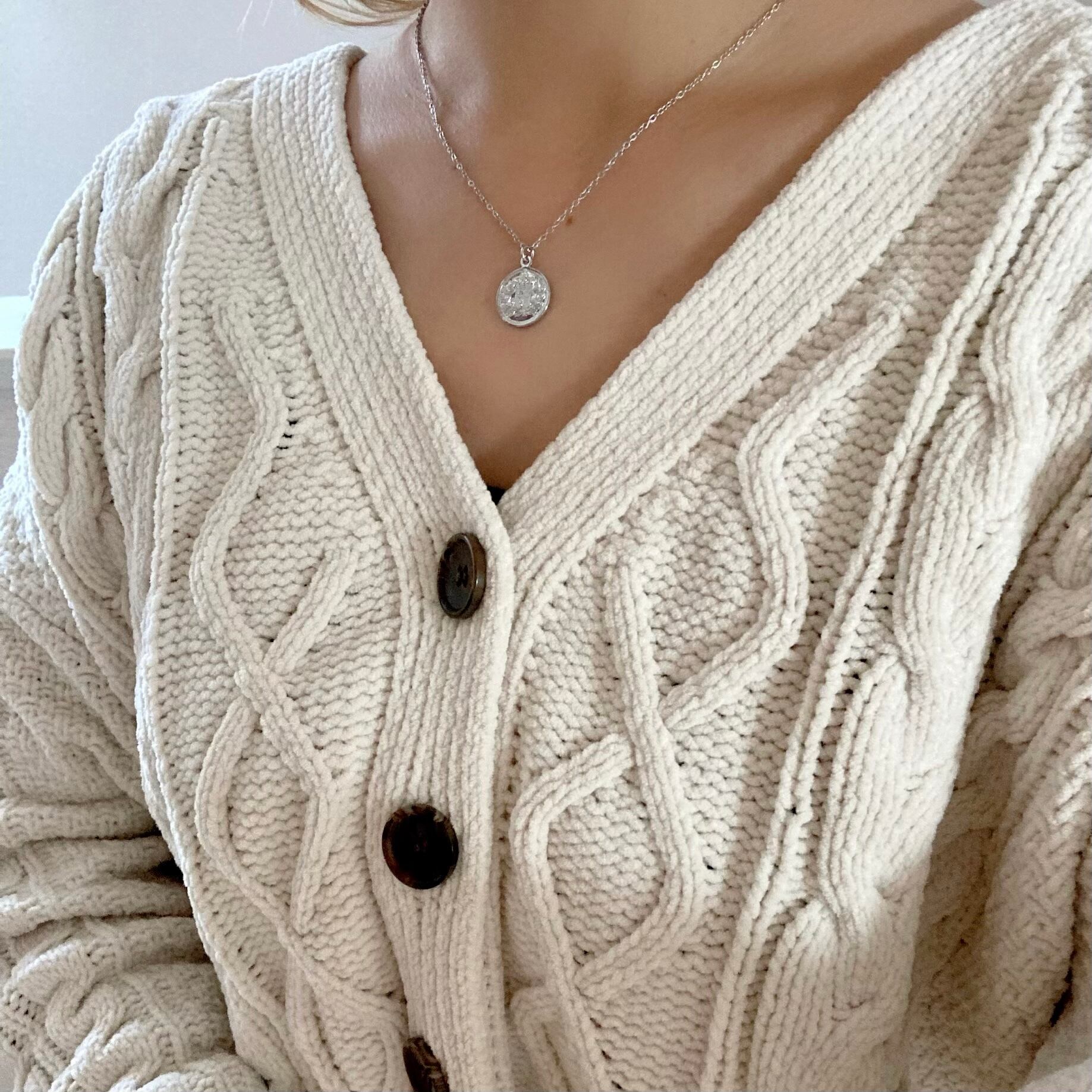 表、裏で絵柄が異なるリバーシブルコインネックレスです。
