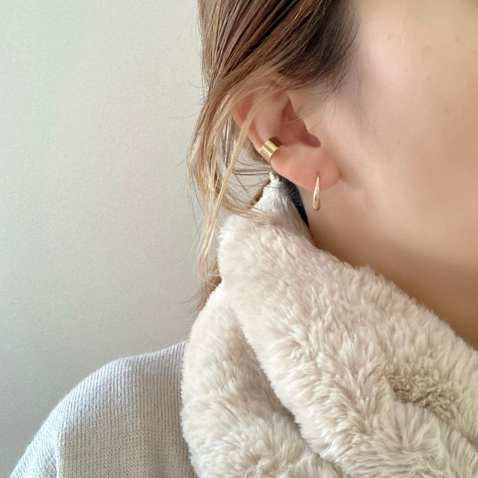 シンプルなイヤーカフは他のアクセサリーとも合わせやすいです♪